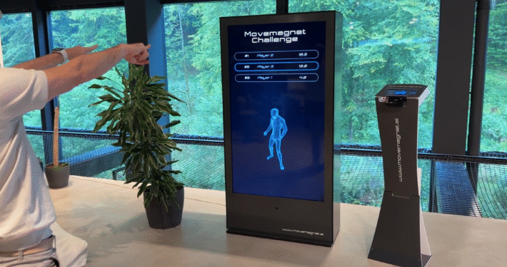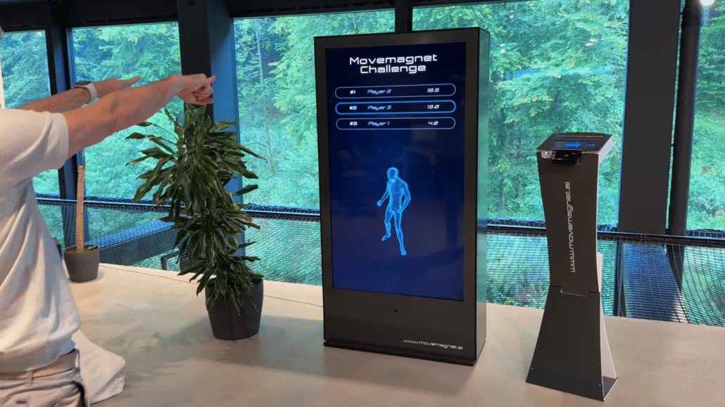 Der MOVE MAGNET aktiviert Teams direkt am Arbeitsplatz: Geführte Active Breaks, kurze Workouts und spielerische Challenges – ohne Umziehen, ohne App.